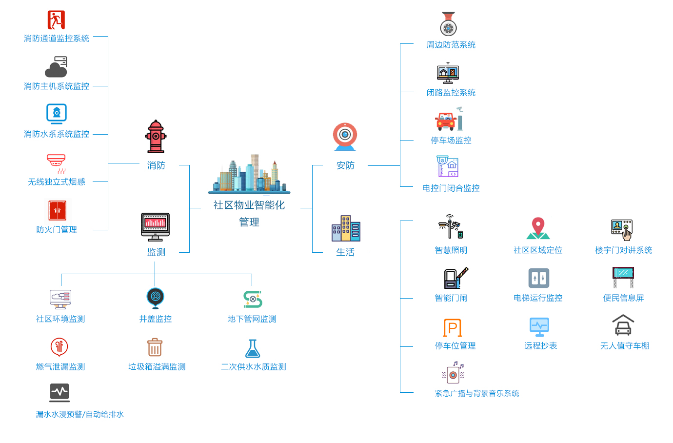 其中智慧物業板塊建設涵蓋了物聯網數據分析處理與物業綜合管理應用,意在改善社區生活、治安環境,提升物業管理水平和降低管理成本。