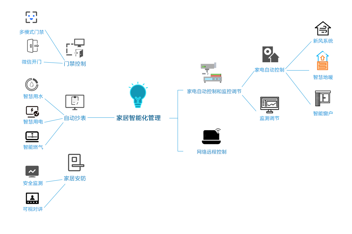 智慧房產板塊建設主要基于物聯云技術對家中智能電器實現一鍵掌控實現居住功能升級打造綠色、節能、全面舒適的智慧生活