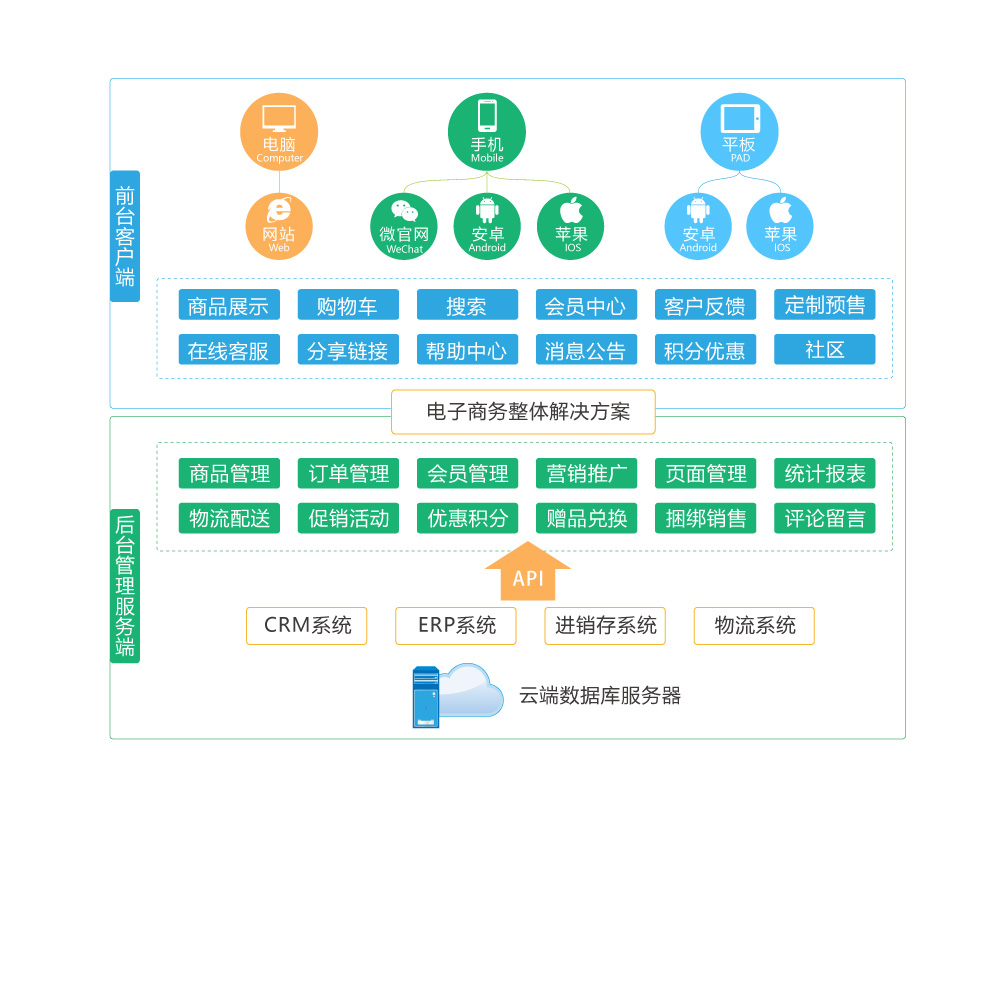 幫助企業快速建立電商的一站式解決方案,為您打通產業鏈信息流、資金流、物流,幫您強化用戶體驗、實現全網會員管理,全渠道訂單統一作業處理的交易型電商移動APP系統。